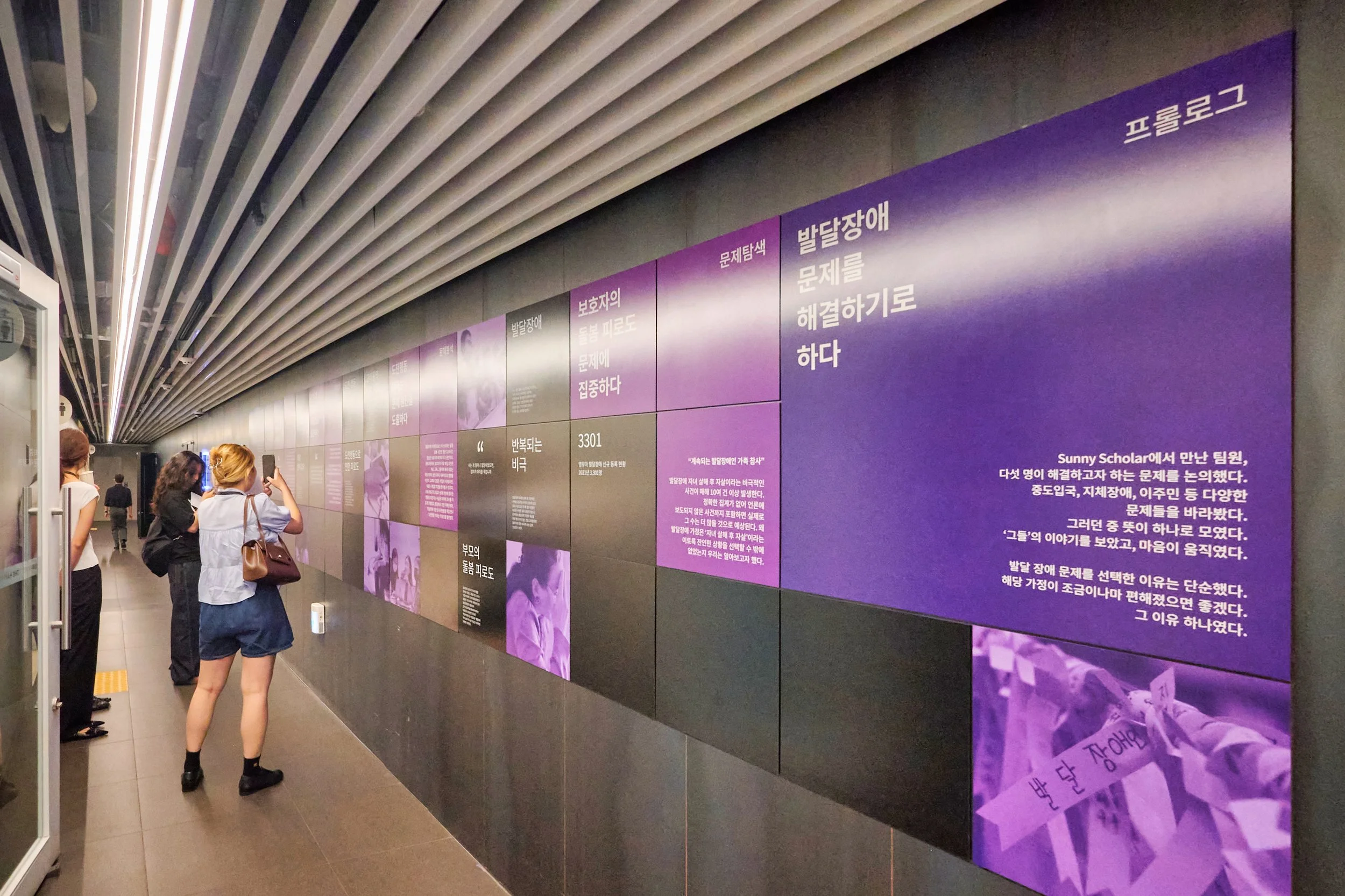 전시대에 올릴 모든 콘텐츠를 작성하고 시각장애인에 대해 지식이 없는 관람객도 시각장애인의 학습과 성장에 대해 자연스러운 이해가 가능하도록 흐름을 배치하였습니다.