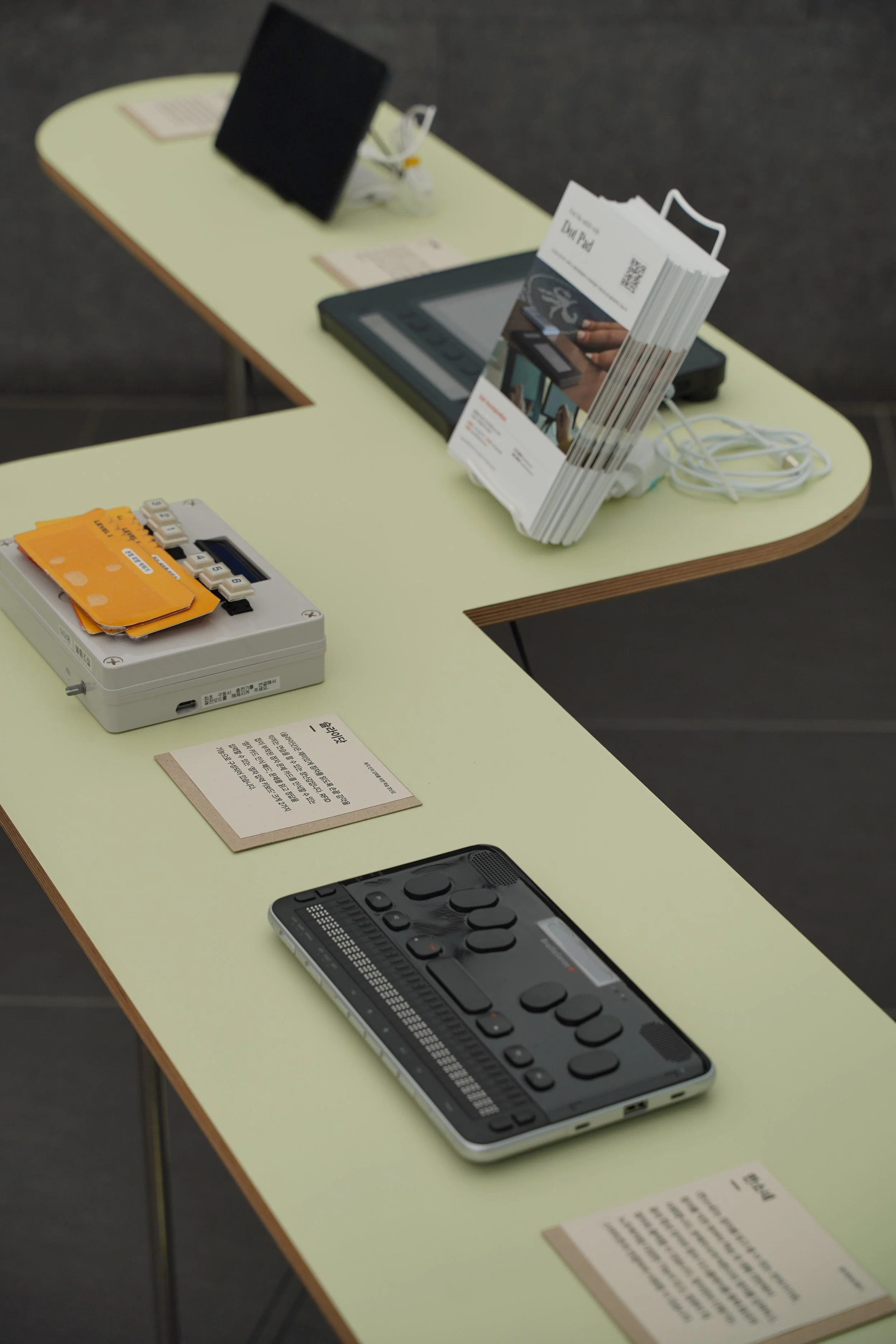 폭 약 4미터의 공간에 방문객들이 언어 감수성에 대한 이해를 높일 수 있는 컨셉을 도출해야 했습니다. 다양한 아이디어 중 예산과 실내 환경을 고려하여 벽 형태의 구조물을 제작하되, 답답한 느낌이 들지 않고 주변 환경과 조화를 이룰 수 있도록 컨셉을 도출했습니다. 특히 색상 별로 포용적인 언어의 카테고리를 구분하였고 그라데이션 패턴을 고안하여 공간과 어우러지는 동시에 사용자들에게 시각적인 임팩트를 줄 수 있도록 만들었습니다. 전시에 일회적으로만 사용되는 것이 아니라 해체 후의 환경까지 고려하여 설치와 해체에 용이한 구조를 개발하였습니다.
