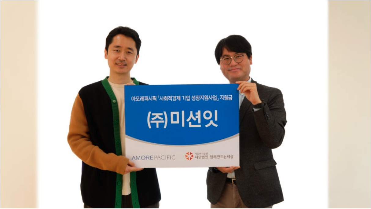 [사회연대은행] 미션잇, '아모레퍼시픽 사회적경제 기업 성장지원사업' 지원금 전달식 참여 (2023.04)