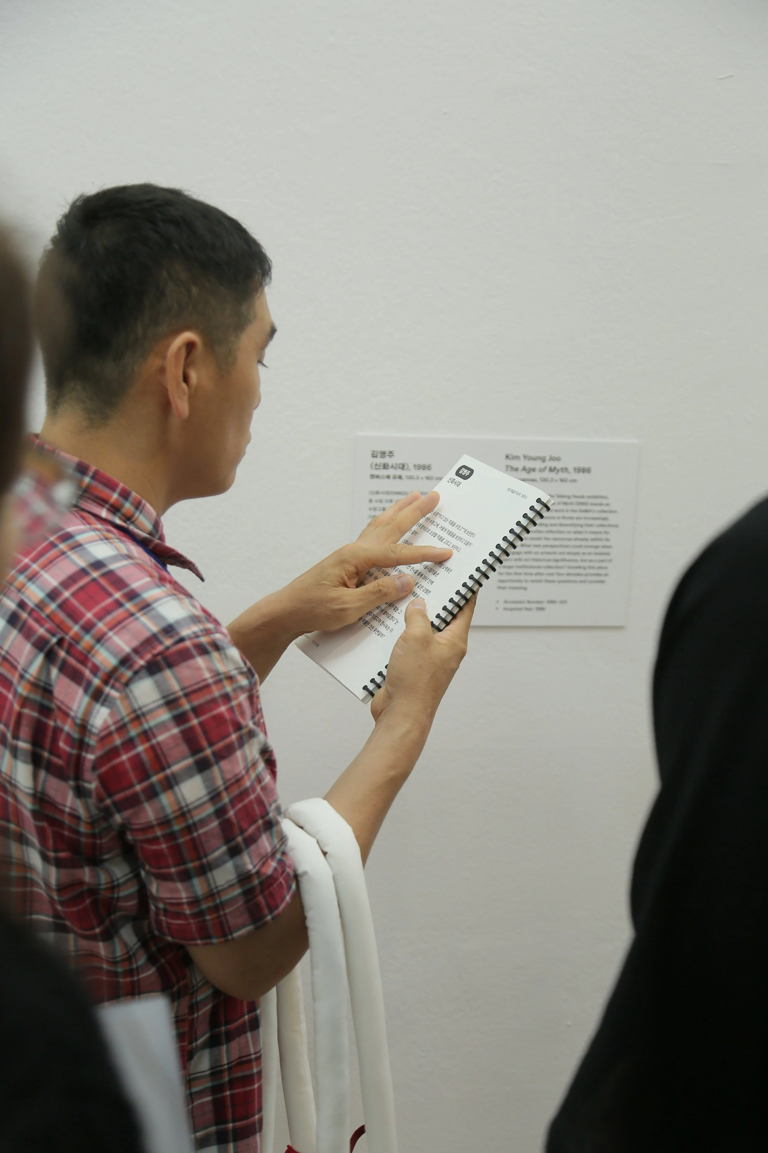 인쇄물 형태의 ‘모든 가방’ 사용 설명서, 관람가이드, 감각 지도는 한 권의 책으로 묶어 한 장씩 넘기며 쉽게 확인할 수 있도록 만들었습니다. ‘쉬운 미술관 안내서’에 관해서 더 자세히 읽어보실 수 있습니다.
