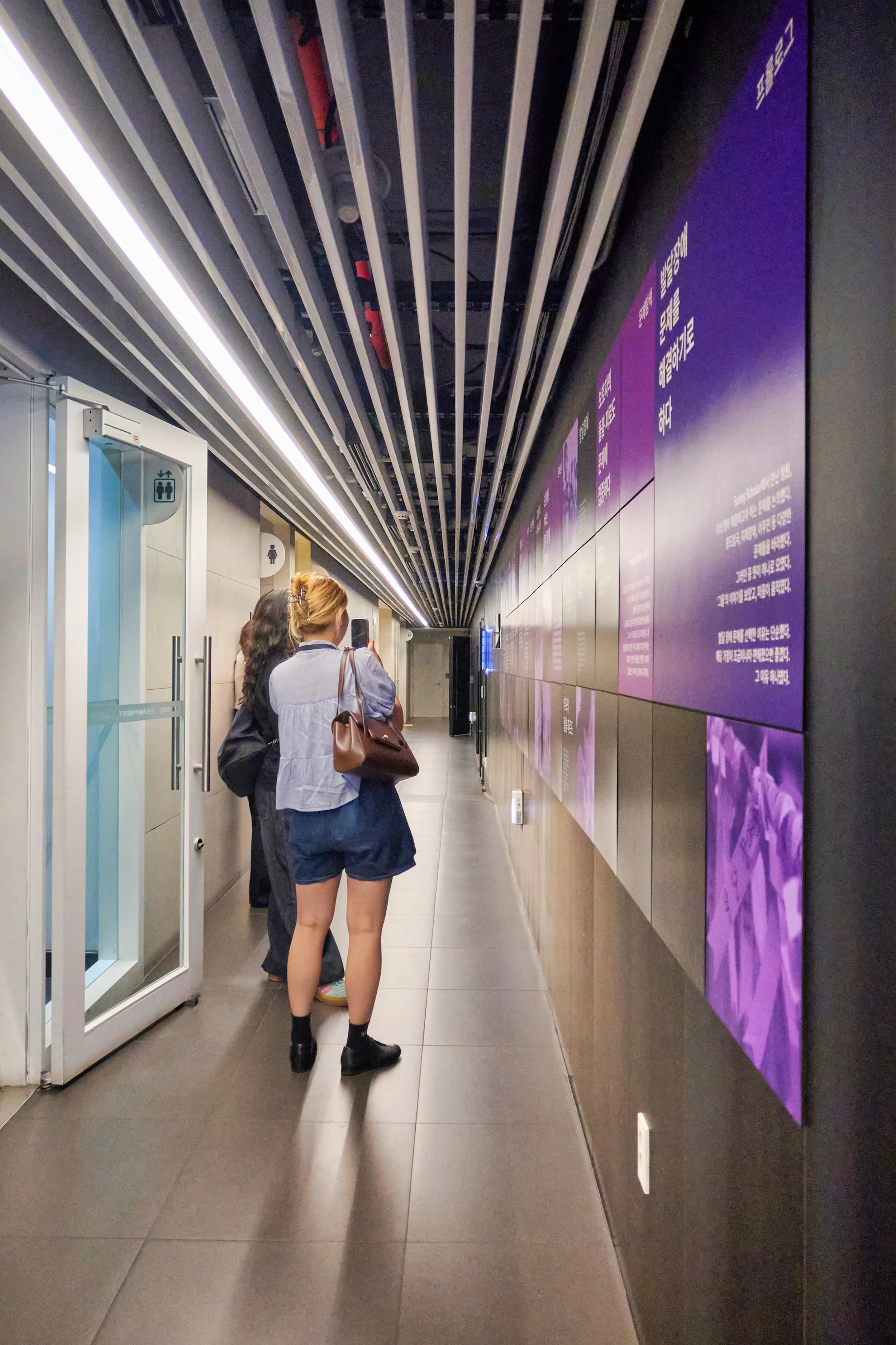 총 48개의 패널을 통해 청년들의 문제 해결 여정을 ‘하나의 길’로 시각화하여, 문제 정의에서부터 해결까지의 과정을 직관적으로 표현하고자 했습니다. 프로젝트의 단계가 진행될수록 패널의 색상이 점차 옅어지도록 디자인함으로써, 문제 해결의 진전과 더불어 발달장애 자녀와 가족들의 밝은 앞날을 기대하는 마음을 담았습니다. 처음에는 검은색 패널로 시작하여 문제의 복잡성과 어려움을 강조하였으며, 각 단계를 거치면서 색상이 점차 밝아져, 문제 해결 과정에서의 희망과 긍정적인 변화를 상징하도록 하였습니다. 이러한 디자인은 관람객들이 문제 해결의 여정을 자연스럽게 따라가면서, 시각적으로도 해결 과정에 따른 변화를 느낄 수 있게 구성되었습니다. 이처럼 전반적인 디자인은 단순히 문제 해결뿐만 아니라, 발달장애 아동과 그 가족들이 마주할 더 나은 가능성을 상징하며, 전시의 핵심 메시지를 시각적으로 더욱 강렬하게 전달하는 데 중점을 두었습니다.